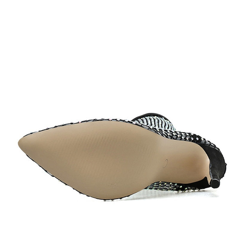 Crystal Rhinestone Mesh Stretch Fabric Sock Boots
